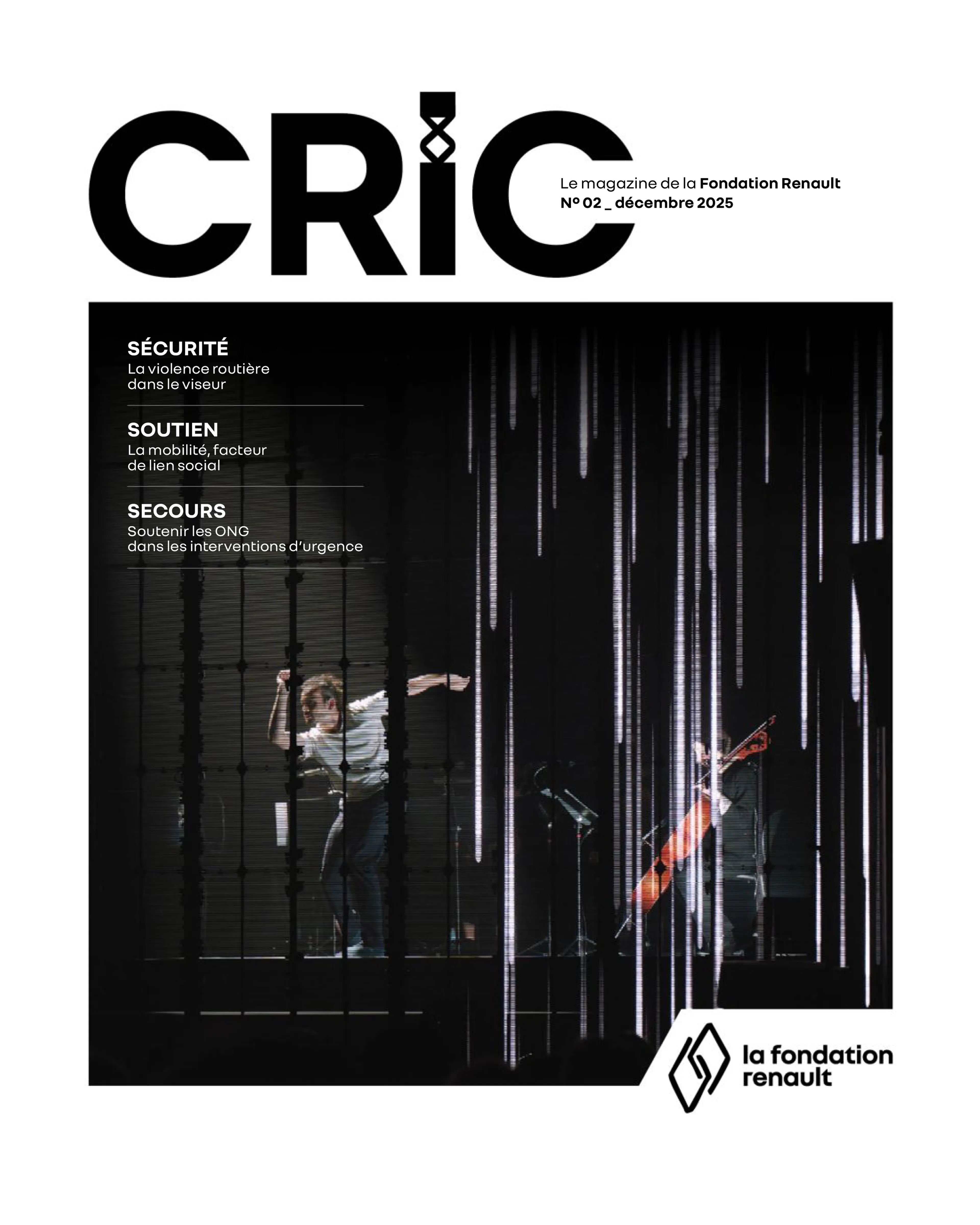 CRIC est le magazine de la Fondation Renault… Un titre évocateur de notre mission et de l’engagement de toutes les associations que nous soutenons. Notre magazine reflète notre conviction, celle de la mobilité qui est le moteur de toutes les solidarités. Bonne lecture !